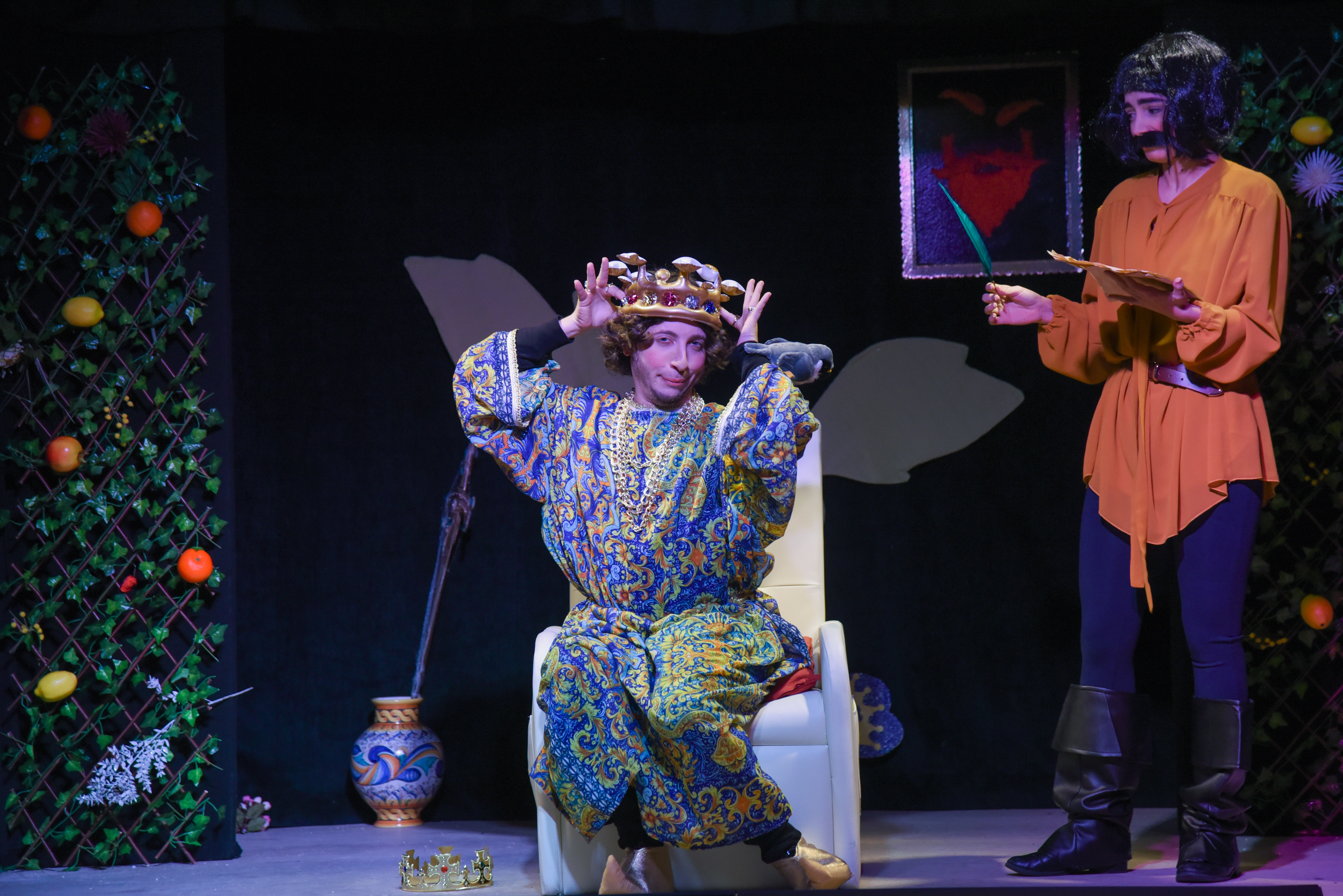 l’arduo compito di smorzare le stravaganti iniziative e i puerili entusiasmi del “Bambino di Puglia”. Federico [e il suo] Secondo è una “storicommedia” che gioca a fondere e confondere linguaggi apparentemente distanti tra loro: quello storiografico con quello comico, quello satirico con quello del musical, quello poetico con quello metateatrale. Pensato per ogni fascia di età, lo spettacolo gioca ad insegnare la storia con leggerezza ed allegria, lasciando però spazio a